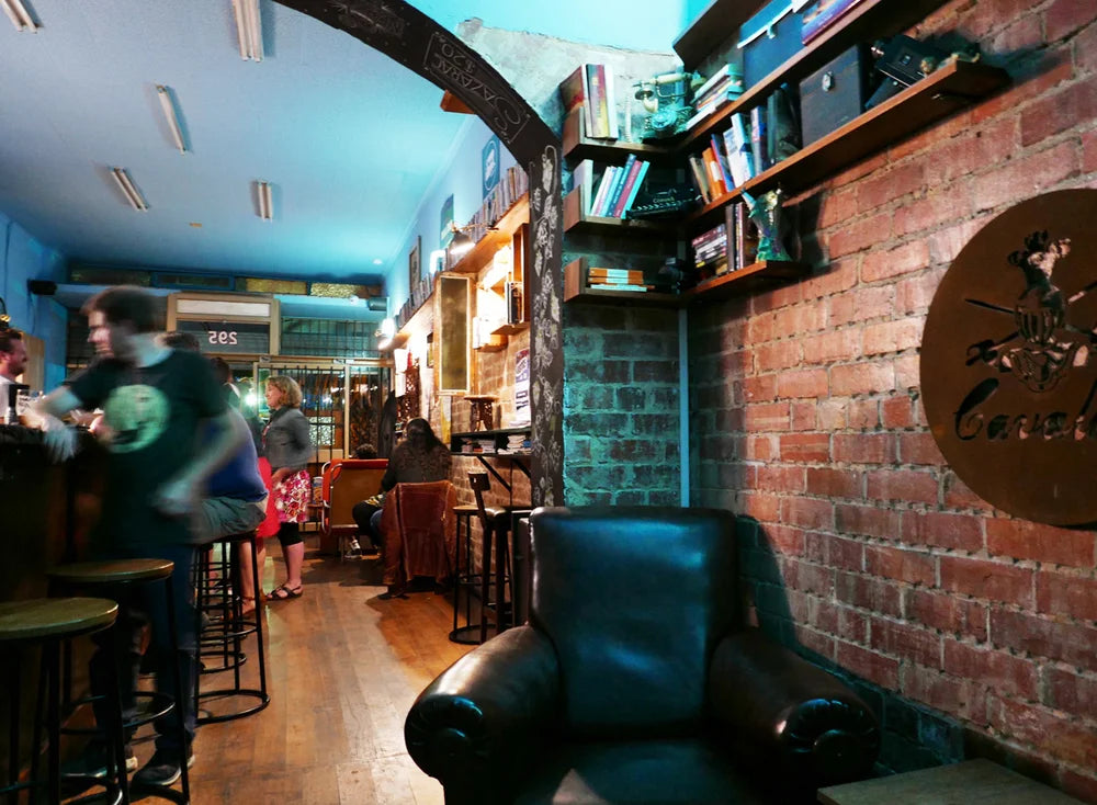 Filled with upcycled furniture, well worn books, VHS tapes, and personal heirlooms, the space feels more like a mate’s living room than a traditional bar. It’s a place built for good drinks, good conversation, and time well spent.
